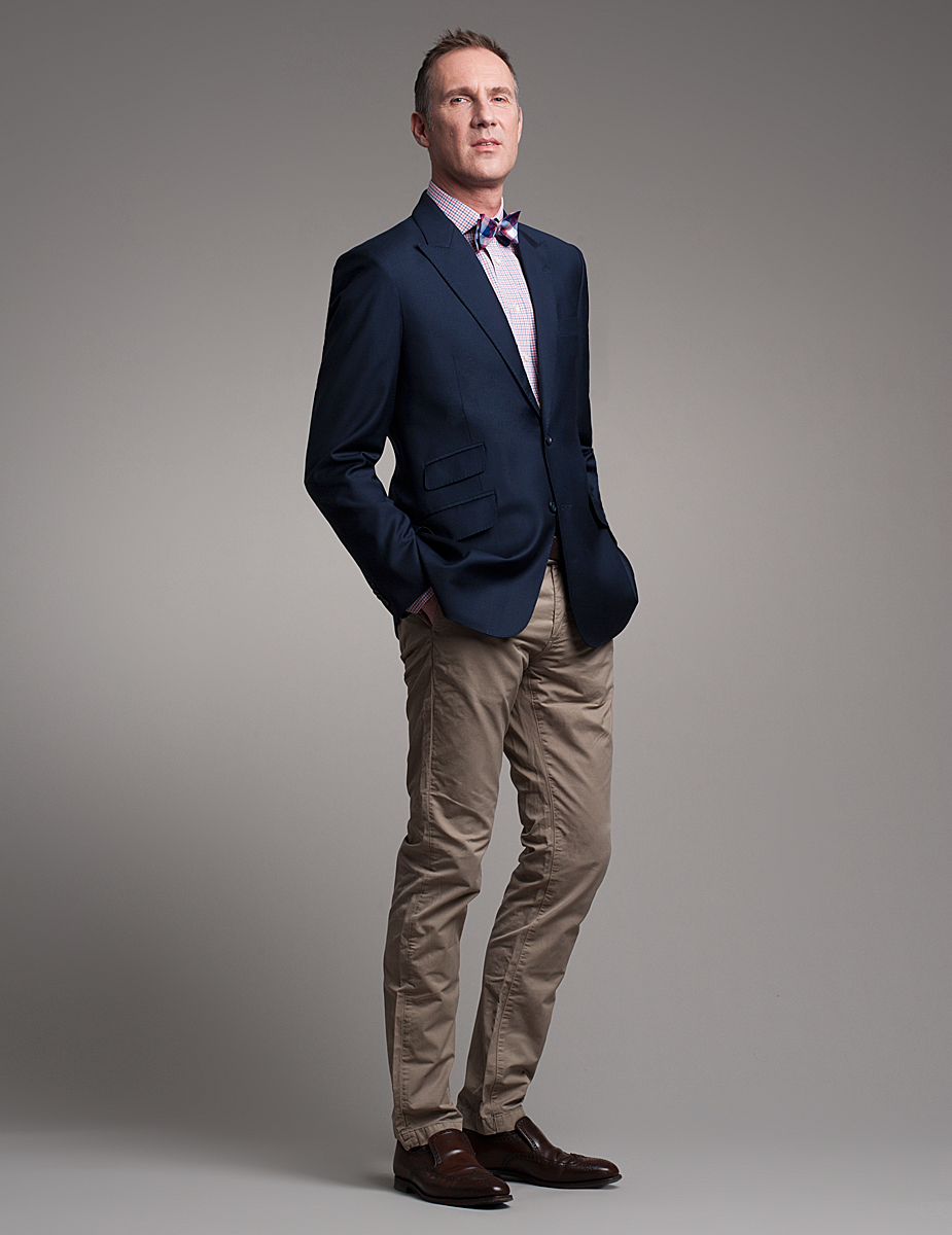 nerdy mit karriertem Hemd und Fliege zur beigen/braunen Chino